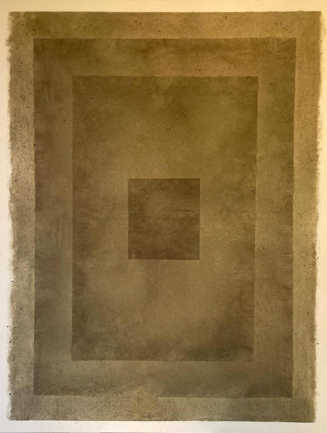 ‘Gestures towards Viriditas’ threads together a material-driven investigation into a more meditative painting practice through the use of lichen along with a close reading of Hildegard von Bingen in light on contemporary philosophy, scientific and personal spiritual concerns. Lichen as a symbiotic plant/fungus, its slow growth rate, the very fact that it is always ‘being-with’ a support, were inspirations. I speak of meditation in the sense of repeating a mantra, but perhaps the models of benedictine orderlies like Hildegard von Bingen are more appropriate in that a ritualistic working and reworking of prayers, songs and indeed plots of land were part of their daily service. Thus the project began, slowly working the same canvas with lichen over and over, before expanding to works that demonstrated the layering process within the works themselves (the ‘Being-with’ series) and later more free form painting based on my readings (for example, ‘The Seven Stars’, ‘Tres’ y ‘No hay que buscarlo’)..